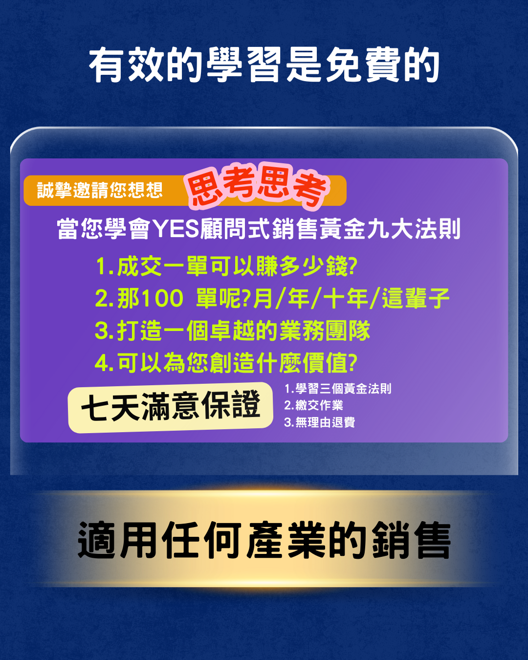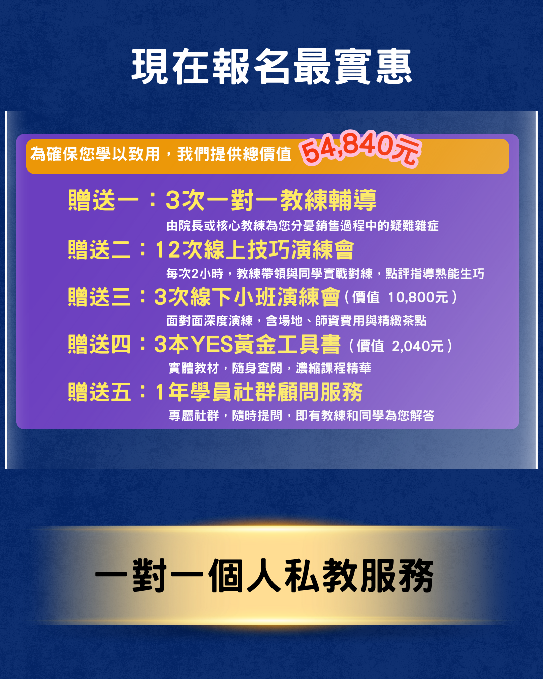 《YES! 顧問式銷售黃金九大法則》私教陪跑1v1專案